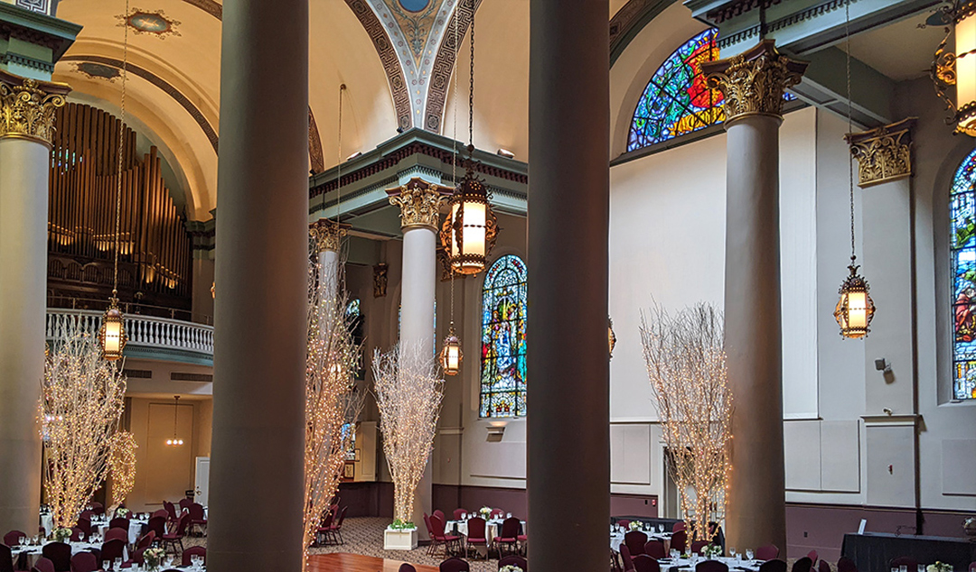 Step into the magnificence of Pittsburgh's Grand Hall, our breathtaking ballroom that sets the stage for unforgettable corporate events. Renowned for its grandeur and timeless charm, this is the crown jewel of The Priory Hotel. With its capacity to accommodate up to 350 people for a sit-down dinner or up to 500 for a cocktail-style event, Pittsburgh's Grand Hall is the perfect choice for prestigious galas, award ceremonies, and corporate banquets.